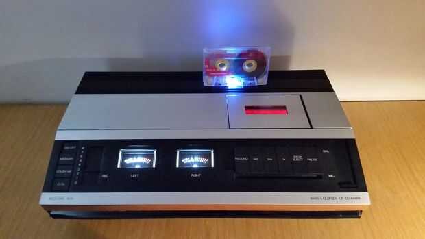 Estaba dispuesto a conseguir el contador de cinta giratoria original trabajando con esta estructura, girar redondo mientras que la música, pero en la práctica esto simplemente no era capaz de hacer - el mecanismo habría sido en el camino del cable de Pi y la cinta, y corriendo con un motor tendría necesita otra alimentación o por lo menos un paquete de baterías.