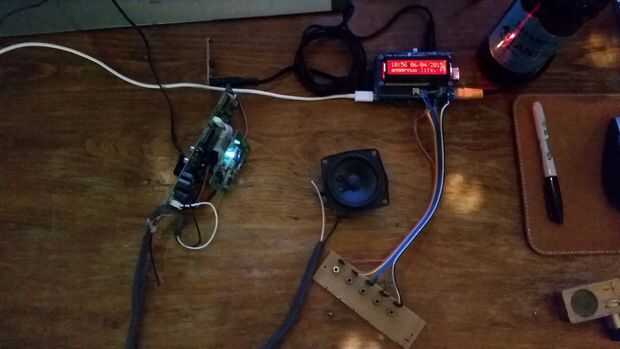 Adafruit kit vino con microinterruptores pero quería cablear los botones mecánicos originales, para que estén soldadas en su puente puestos en su lugar. Tomó algún ensayo, error y volver a soldar para conseguir trabajo, una cosa que quiero decir es que si la pantalla ilumina pero cheque en blanco de miradas el control de contraste! Me hizo rascarse la cabeza durante horas. Una vez tuve la radio Pi trabajan por cuenta propia (a través de auriculares) se ocupó vanamente con el código establece el color de pantalla rojo más como frambuesa, crear mi lista de reproducción de emisoras de radio y wifi mediante un adaptador USB. No he citado del código directamente aquí las instrucciones en los sitios vinculados arriba son mucho mejor de lo que podía replicar!