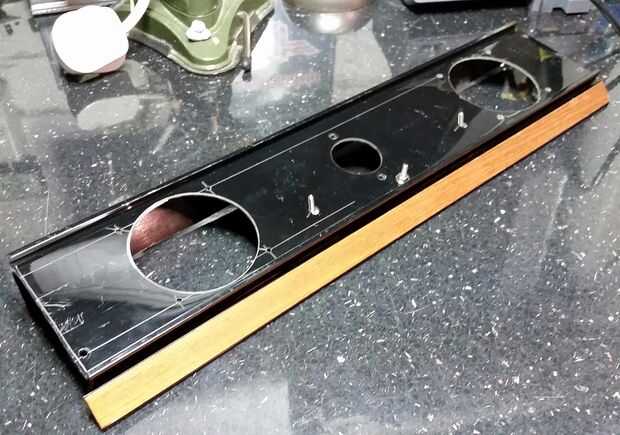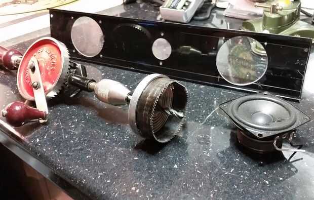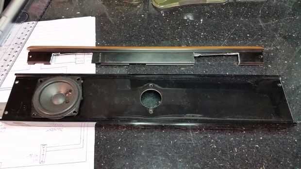 Era bastante obvio que los altavoces no pudieran montarse en la parte trasera o los lados del caso, como se trataba de aluminio sólido y mirada del botín los originales, así que decidí que encajen en el frente, inclinado hacia abajo para que no cometan la unidad demasiado alto y feo, pero no anguloso tanto que sería ser amortiguado el sonido. Picado hacia abajo de la caja barra de sonido original a la anchura del Beocord y hecho nuevo altavoz de cortes en ella utilizando el orificio de la Sierra - la primera vez había usado uno pero hizo un trabajo realmente! Picado entonces algunos de la parte posterior del recinto así podría fijarse para el caso en a ángulo recto.