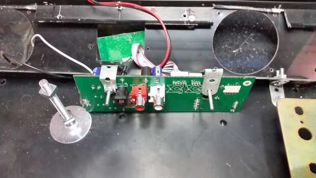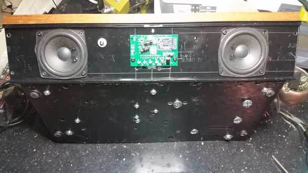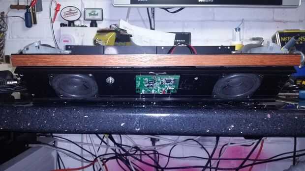 El sonido era bastante bajo uno (marca tech de Sainsbury) que vino liado con un TV usado compré, tenía ningunas preocupaciones sobre el lo aparte, desgarro después de haber probado primero - sonido calidad fue bastante buena, solo un poco siseante en volumen bajo, no desemejante de un 80s grabadora! No había mucho que en verdad, sólo los dos altavoces, un Consejo de la Amp, para los LED de estado y sensor IR y un tablero más pequeño separado para los microinterruptores modo de potencia y volumen.