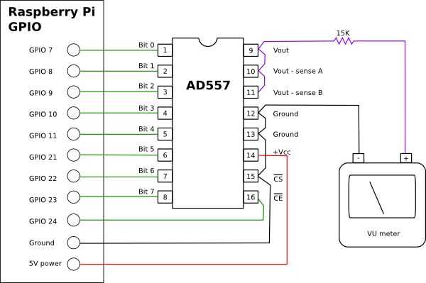 Esto parecía la solución ideal como gracias a la rúbrica de gpio extra alto solo he podido conectar un tablero de Zapatero a la DAC para alimentar los medidores de VU. He intentado esto hacia fuera en el protoboard primero (en parte mediante puentes de los cables originales de B & O) y simplemente no pudo hacer que funcione - aunque esto parece ser un problema de configuración de software en lugar de circuito o prototipos.