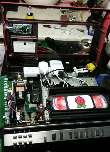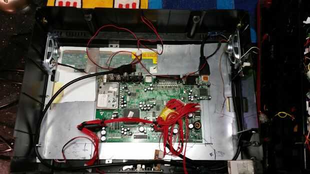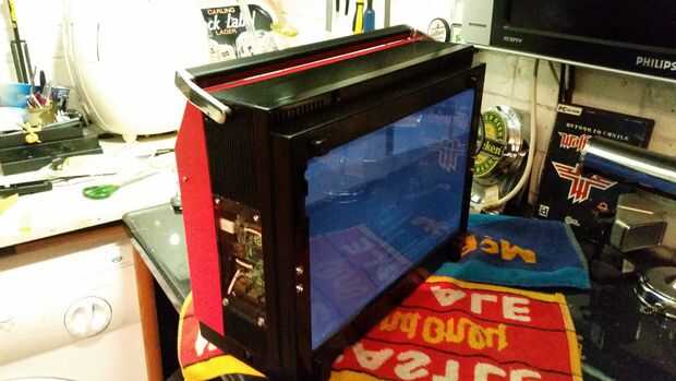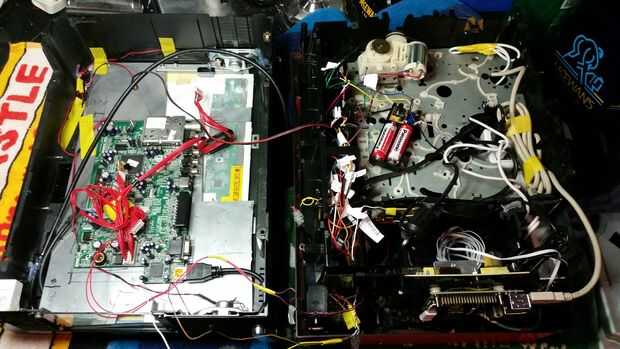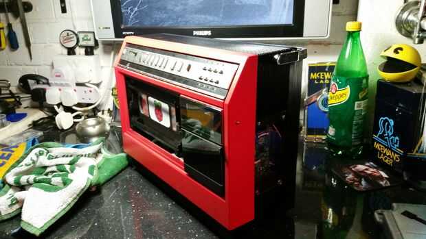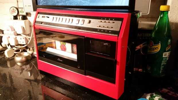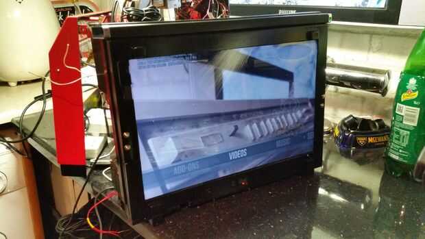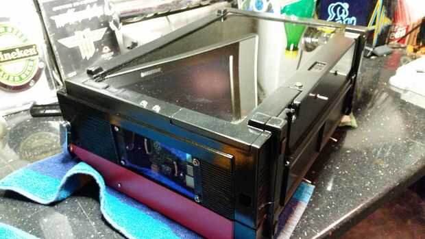 Hasta ahora era la estructura en tres secciones, la parte delantera roja con alimentación incorporada, la sección central con la Pi, botones y circuitos y la parte posterior de la TV. Haber sido difundido a los cuatro rincones del taller que era tiempo de armar este monstruo.