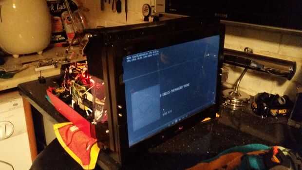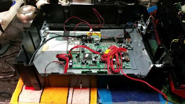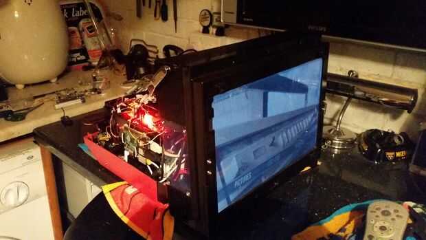 Con más espacio en el caso que ahora instalado junto con un poco de un apretón, así que encendido para probarlo - todo funcionaba excepto la TV, que era lo que había estado temiendo - es siempre un poco chunga la reutilización de circuitos fuera de su caja original y me convencí que había encajado un condensador o algo, que hubiera escrito al final de este proyecto hasta podía encontrarse un televisor idénticamente tamaño. Resultó para ser sólo un corto en el cable entre la TV y el botón de encendido/apagado sin embargo, y con un poco de soldadura surgió a la vida.