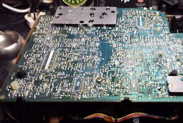 Con más tecnología de esta época fue jodido y bien atornillado y vino aparte realmente muy bien, revelando una enorme cantidad de componentes de embalado firmemente en grandes circuitos. Estos obviamente fueron diseñados para ser reemplazable y complejo pero puedes ver los componentes de forma individuales o juntas podrían ser intercambiadas hacia fuera para mantenerla en funcionamiento.