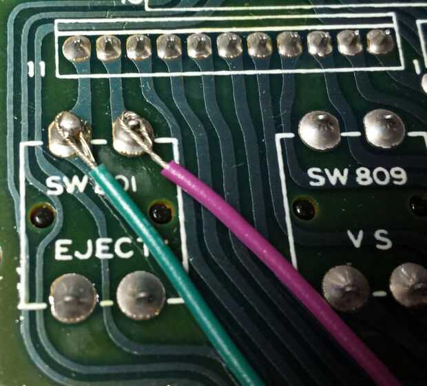 Cableado en el botón de eject sí mismo era una brisa por la comparación - de placas de circuito impreso comentó así que era fácil de alambre en algunos plomos voladores y aislar el interruptor del empuje del resto del circuito.