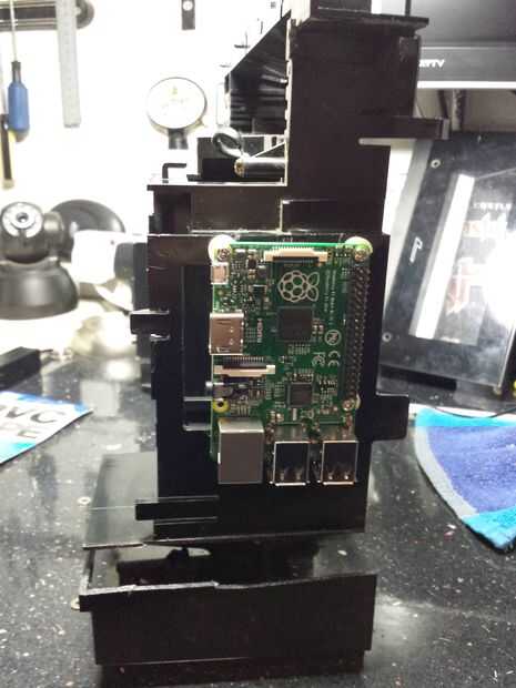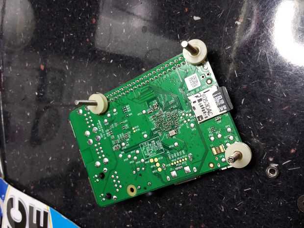 He decidido montar la Junta sólo dentro de la caja para que sea fácilmente accesible, por suerte había un conveniente tamaño de Pi vacío el panel de conexión lado desechados. Con montado en el chasis de VCR y trabajar felizmente con la TV y el receptor de infrarrojos pasó a cosas menos sencillas.