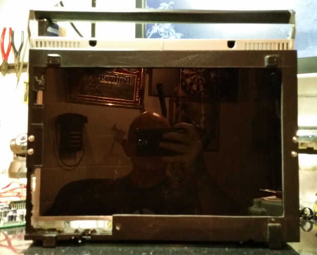 Desmontado en tres partes internas principales, pantalla, tablero de potencia y el tablero de control con varias entradas. Debo decir por adelantado que no conecto a la red desde este punto a hasta que se construyó en el caso, la seguridad primero! El panel de la pantalla resultado para ser un increíblemente afortunado aptos para la parte posterior de la caja, dejando sólo un 20mm "bisel" en los lados.