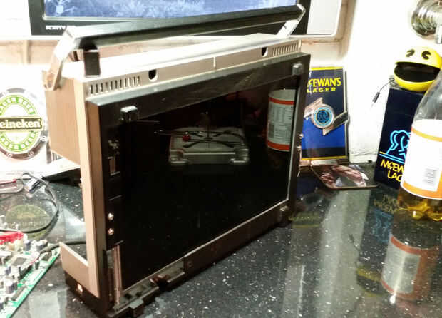 La idea de tener una pantalla en la parte posterior de la VCR fue una de las cosas que trajo esto a la parte superior de mi lista de proyectos, ya que hace una característica real de diseño extravagante de la unidad. Me las arreglé para recoger un televisor HD-ready en el maletero del coche para £5, con un HDMI entrado para Pi pero ningún cable o remoto, que bien me! Había mantenido en su estado original durante el trabajo de lado de Raspbmc y había desmontada una vez que había resuelto el problema del botón.