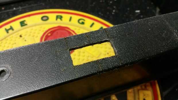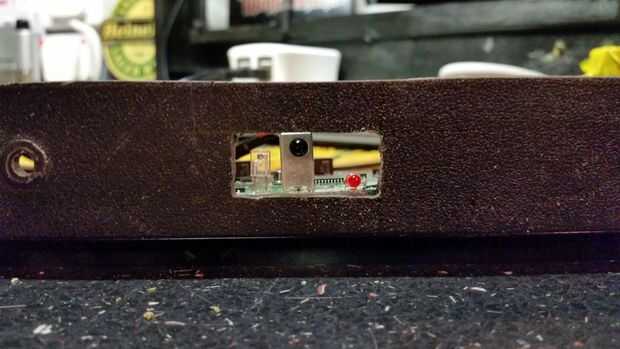 Corté un agujero en el caso de una herramienta giratoria, emprolijar con un pequeño archivo y trabajo hecho! O por lo que pensé - cuando miré otra vez el caso y la falta de espacio me di cuenta el cable en espiral-para arriba para el sensor de infrarrojos tendría que ir - fue alrededor de 2 metros de largo! He picado y había reducido a unos 20cm, hacer un ahorro de espacio grande.