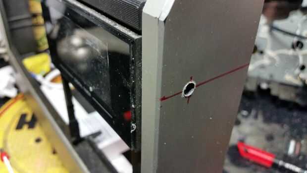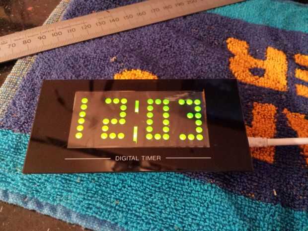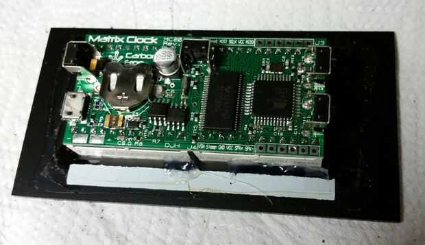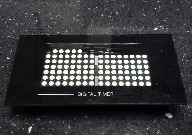 El panel transparente del reloj original era demasiado pequeño para el reloj de la matriz a Pío, pero útilmente el panel fue plexiglás pintado solo, así que fui capaz de raspar la pintura negra para agrandar la parte clara - rascó un poco demasiado fuerte en algunos lugares pero se ve OK!