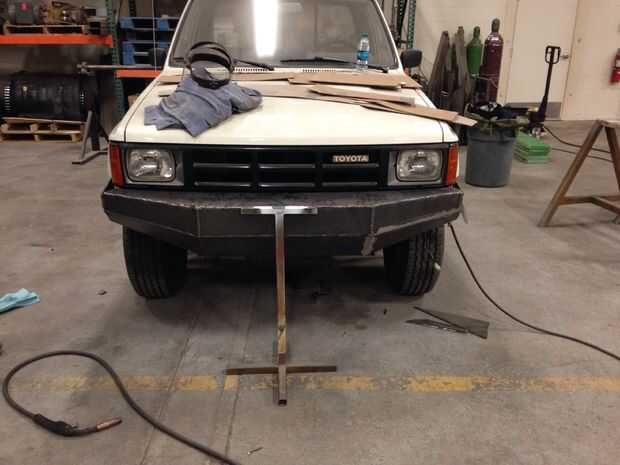 Ahora ver cómo se ve. Pongo un torno en mi parachoques. Así que tuve que ponerlo allí y medir para el agujero del torno.