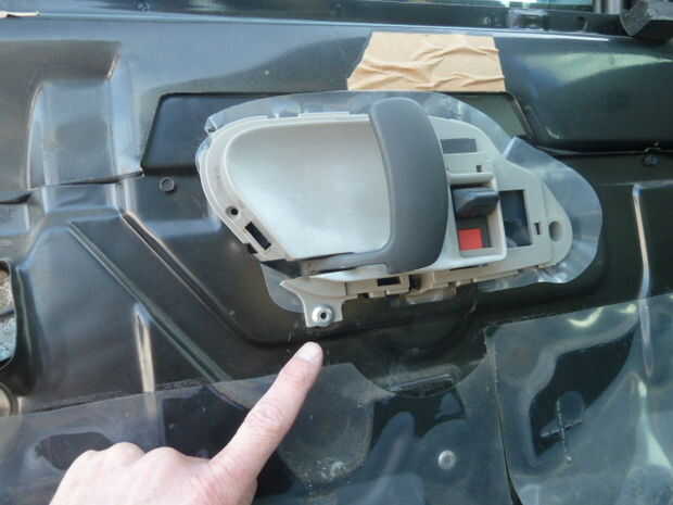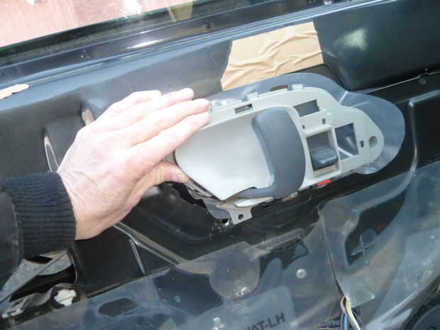 Ahora empuja hacia delante el montaje de la manija y tire de la puerta.