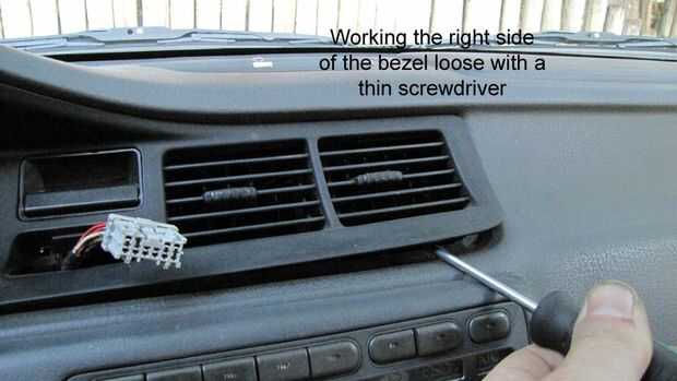 Ahora suavemente trabajamos la parte de ventilación de aire acondicionado para arriba con un destornillador fino. Ir lentamente alrededor de los bordes, a partir de aquí por el ducto de aire acondicionado primero.