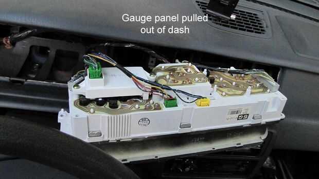 Tenga en cuenta las tres fichas grises en la parte delantera de la caja blanca, también hay tres en el otro lado. Estas fichas Fije la lente claro al cuerpo blanco de la cubierta del racimo. Levante con cuidado usando la regla de metal pequeña que mostré antes, o una herramienta similar. Me lo quitaron para limpiar realmente bueno, pero no toque la enfrenta o agujas del calibrador. Los dedos dejará impresiones digitales aceitosas que no salen!