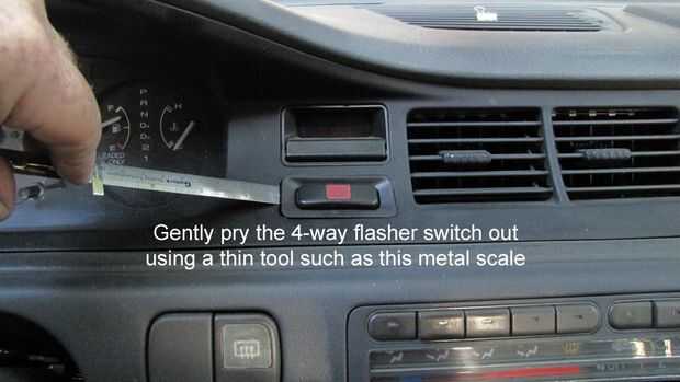 Usar una regla delgada para trabajar debajo del borde de la envolvente de interruptor intermitente de 4 vías. Suavemente trabajarlo hacia arriba en un lado luego el otro.