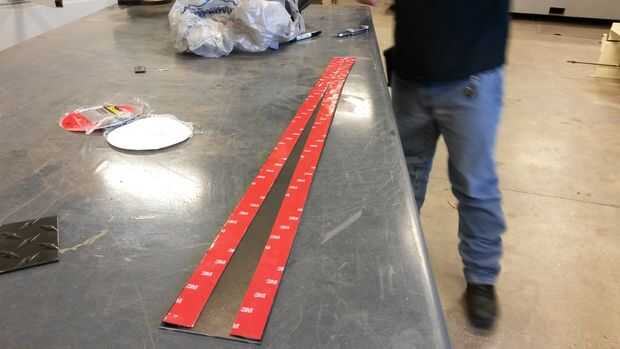 Se aplicó una cantidad abundante de cinta de montaje Scotch extremo a la parte posterior del aluminio.