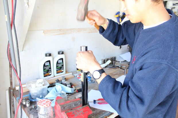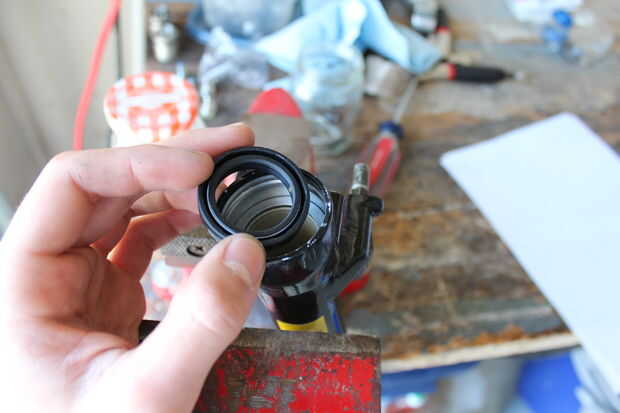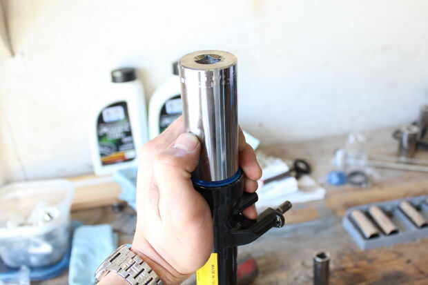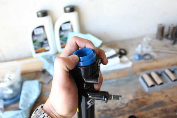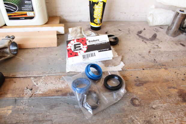 En el paquete de juntas de recambio, los "guardapolvos" son de color azul que es una diversa forma y color que la anterior. No estoy seguro si es mejor que el stock pero yo diría que parece más elegante. Luego seca de los componentes del regulador y les vuelve a montar. Después de alinear el "retén", he encontrado una toma grande que caben dentro de la botella y martillado con un mazo para presionar el sello en su lugar. Las instrucciones dicen utilizar su herramienta especial, el "sello de prensa", que estoy seguro que es un desperdicio de dinero. Después de volver a colocarle el anillo de seguridad "sello de aceite", alineó el guardapolvo y también había martillado con una toma de corriente. Las instrucciones de juntas de horquilla de Enduro recomiendan poner los sellos en el congelador antes de instalarlos. No hacerlo pero recomiendo probarlo. El efecto de la temperatura en la expansión del caucho es mucho más de metal para que pueda ver el paso de un esfuerzo de ahorro.