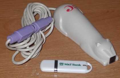 he tenido un escáner de código de barras cuecat sentados por más de 10 años. Básicamente se conecta a un puerto PS2 (al parecer hay una version USB) como un teclado y escupe hacia fuera un código de barras cuando se analizan. Bonito!. Lo molesto es q