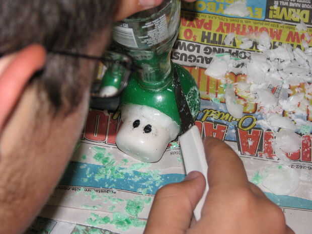 Mueva la botella y cortar un par de milímetros de la cera.