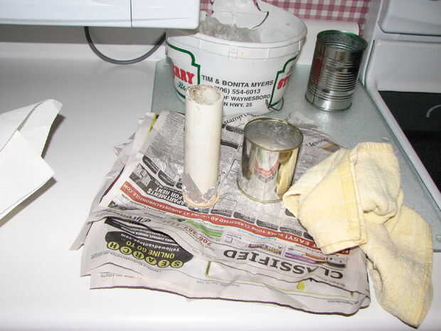 Derrite una pequeña cantidad de cera y añadir crayon blanco triturado como necesarias para que la cera se vean como a blanco puro como usted puede. La tiza no es necesaria ya que debe secar la cera para convertirse en blanco de todos modos, pero agregar me hace sentir mejor. Usé 1 creyón de Crayola blanca.
