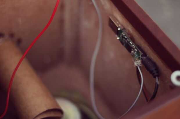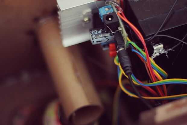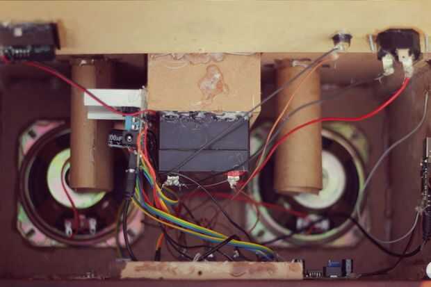 Positivo de encendido/apagado se conecta al positivo de la Junta. Negativa de la toma AC, batería, receptor Bluetooth está conectado a la negativa de la Junta. Soldado un extra en los puntos de led en el amplificador. Soldado los cables del altavoz en el tablero en lugar de insertarlos en las ranuras, los cables mantienen viniendo hacia fuera delantero lo, pero esto se hizo una vez que los oradores fueron puestos en el panel de montaje de altavoz. Desoldar el potenciómetro de 50K existente y lo reemplazó con una 20K para aumentar el nivel de volumen. Enchufado un cable de 3,5 mm aux desde el módulo de receptor de bluetooth en el audio de 3,5 mm en el puerto en el tablero.