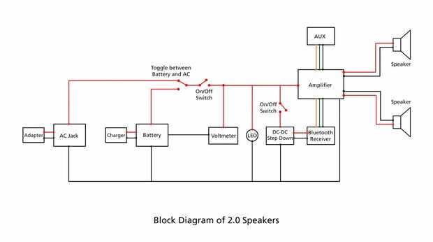 Salida de la palanca de fuente de alimentación está conectada al polo lateral. Un cable desde el centro de la salida de Polo está conectado al positivo de la Junta de amplificador, uno está conectado al positivo del voltímetro y uno está conectado con el Bluetooth encendido/apagado interruptor lado del poste.