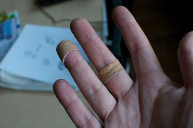 - Cortar dos tiras de cinta de doble faz. Las tiras adhesivas deberían ser de 5 cm (2") más largo que el tamaño de la muñeca y aproximadamente 1,5 cm (0,6") de ancho.