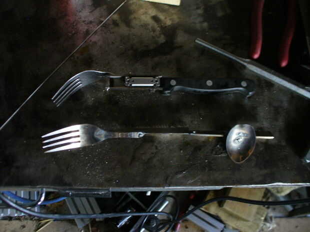 Finalmente soldar la cucharilla para que el pulgar se ajusta en él sujetando el mango principal (originalmente desde el cuchillo de filete).