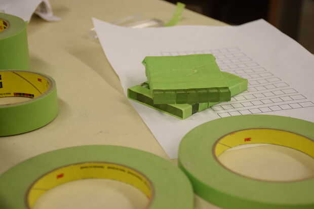 - Cinta de enmascarar las barras, sólo dejan la zona de bloque que desea las luces arriba expuestos más adelante. Puede obtener la mejor calidad si cinta uno a la vez. Grabado un sistema a la vez para ahorrar tiempo.