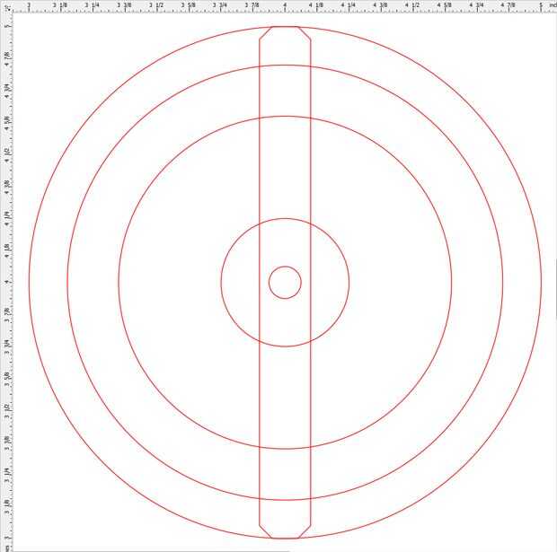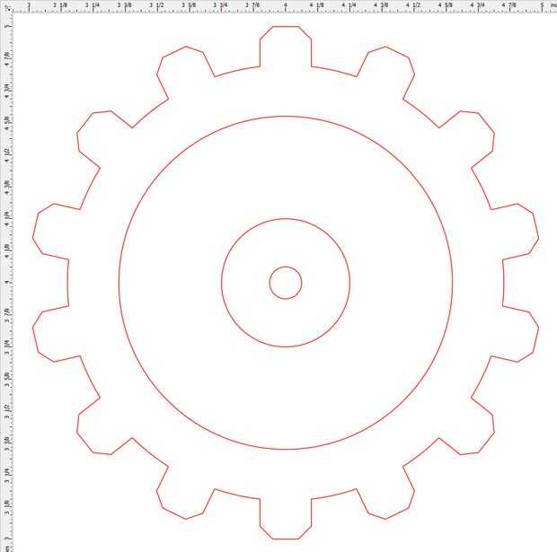 Comenzar con una copia nueva de los círculos concéntricos. Dibujar un rectángulo que es 2.0" de largo y 0,2" amplia, centrada en los círculos. Se ha añadido un 0,05 "x 0,05" chaflán a cada esquina. La porción entre los dos círculos exteriores forma los dientes del engranaje. Ahora, utilizando las copias de hacer 6 transformación rotar del rectángulo un ángulo grados 25,71. Así distribuirá uniformemente los dientes en el engranaje. Puesto que estos engranajes particular sirven para mostrar los aspectos cosméticos del grabado de 2,5 D, no me preocupa demasiado si los dientes y huecos de malla perfectamente como lo haría para una marcha funcional. Por último, utilice la herramienta Virtual segmento borrar para eliminar a todos los segmentos de línea innecesarios.