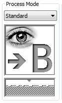 Cuando vayas a imprimir el diseño, usted tiene que asegurarse de dos cosas. Uno, asegúrese de que trama de semitonos se apaga o los dos colores se convertirán en un patrón blanco y negro por lo que no podía grabarlos individualmente. En segundo lugar, asegúrese de que el ajuste del modo de proceso de está configurado a estándar como se muestra en la imagen.