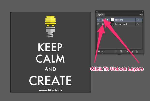 - Este diseño ha bloqueado las capas. Haga clic en el icono del candado para desbloquear las capas por lo que podemos comenzar la selección. Si no han bloqueado el diseño capas Omita este paso.