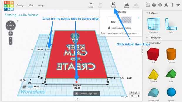 - Alinee la placa con el modelo. Ambos modelos se deben seleccionar, que se puede hacer haciendo clic y arrastrando sobre ambos. Haga clic en ajustar y alinear. Seleccionar las fichas de centro de la X y Y hachas para centrar alinean su diseño con la placa. Haga clic en Grupo.