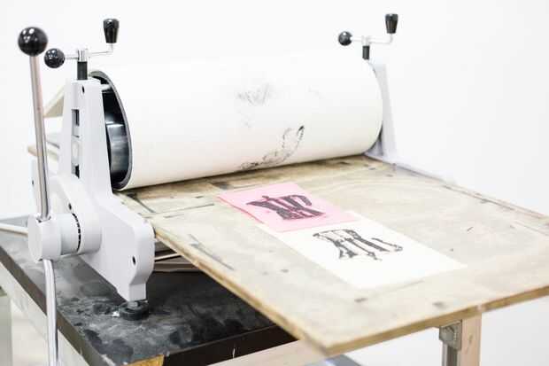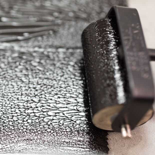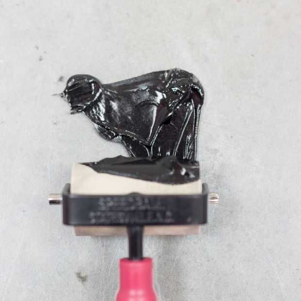 - Ahora rodar el rodillo sobre el bloque para transferir la tinta. No presione demasiado duro. Si consigues tinta donde no debían para simplemente ser frotar apagado con toallas de papel seco.