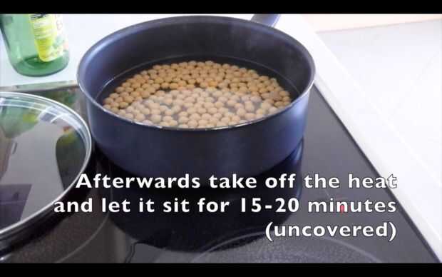 Poner a hervir y luego retirar del fuego. Deja que los garbanzos se sientan en la olla durante 15-20 minutos, destapado.
