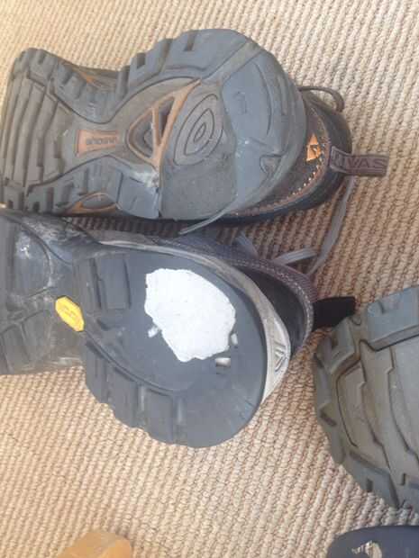 Cada uno de nosotros lleva a la suela de los zapatos en nuestro propio camino particular, basado en nuestra marcha. Por ejemplo, llevo a la parte posteriora fuera del borde del talón antes que nada. Mira las zonas desgastadas en sus plantas, piense acerca de cuánto necesita ser parcheado, luego ver los zapatos de donantes e identificar zonas menos gastadas que crearían la forma necesaria para el par de destino. (Reconocí que podría utilizar la espalda en el borde del pie opuesto en los zapatos de donantes para tomar el lugar de la zona desgastada en los zapatos de blanco).