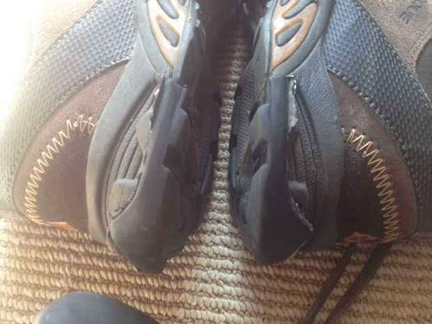 Estos son mi versión de los zapatos del jabón, que puede moler on rails, repisas y en cualquier otro lugar un skater o inliner agresivo puede. Utilizan un par de zapatos, un material deslizante (algún tipo de plástico es probablemente mejor) y pegame
