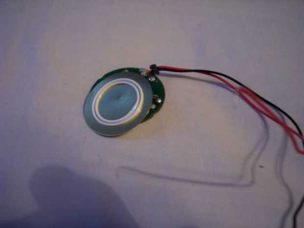Para comprobar si está funcionando, sólo tuerza los alambres alrededor de las conexiones en el conector (la polaridad no importa) y si está trabajando y hacer el sonido, desconecte el piezo así que usted puede poner la tapa que sujeta el jack.