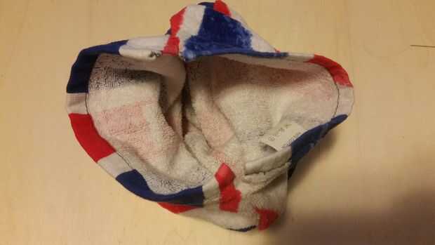 Cuando haya terminado de coser los tres lados, frente a las esteras como si fuera un calcetín.