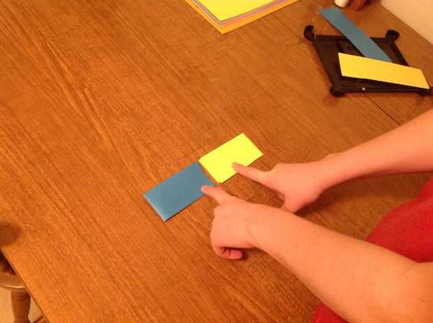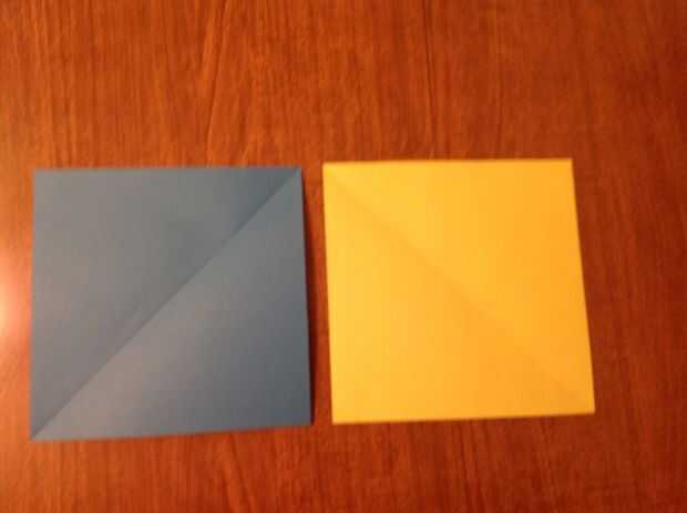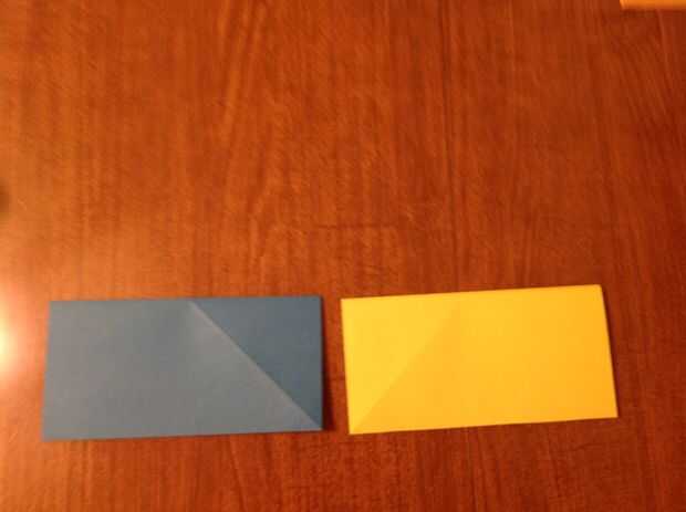 2. Ahora vas a doblar ambas piezas de papel por la mitad. Doble hacia abajo