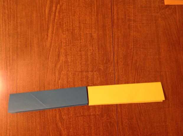 4. esta es la última vez que doblarlas por la mitad, pero en lugar de abatirlo vamos a tomar el partido y doblarlas juntos