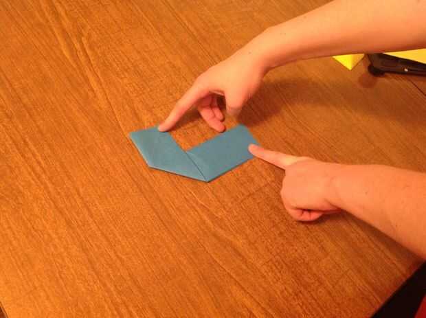 1. vas a tomar la esquina inferior izquierda y plegar hacia el centro (línea que hicimos cuando nos los dobla por la mitad)