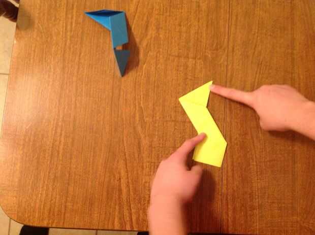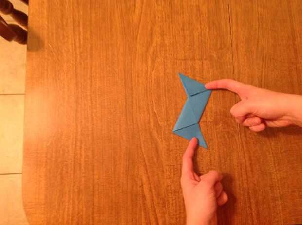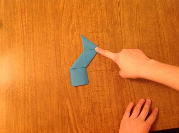 1. ahora tenemos que tomar la parte superior y dóblelo hacia abajo. Esto debería hacer un punto. Si lo hace recto entonces dobla la esquina equivocada