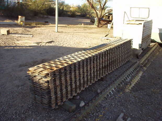 Las dos partes, donde la estructura se fijará a las estacas, son críticas. Después de trazar el plan de piso y asegurándose de que eran cuadrada, nos trenched hacia abajo lo suficiente para enterrar la estera doblado de Marsden (PSP). El PSP fue nivelada cuidadosamente, como esta será nuestra referencia para nivelar el piso más adelante. También fue rellenada con grava y Aguado.