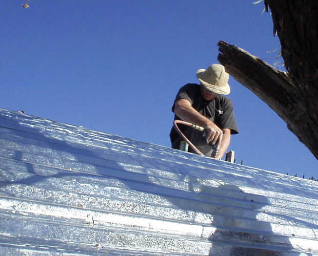 Ahora teníamos prisa - el potencial de una tormenta de viento principales que en este momento fue aterrador. El edificio es extremadamente vulnerable en esta etapa, ya que no es estructuralmente sólida, pero tiene mucha superficie vélica de viento. Este era el momento para usar cada hora del día para terminar la piel. Es increíble cuántos remaches tarda algo como esto!