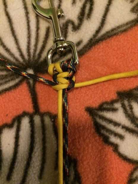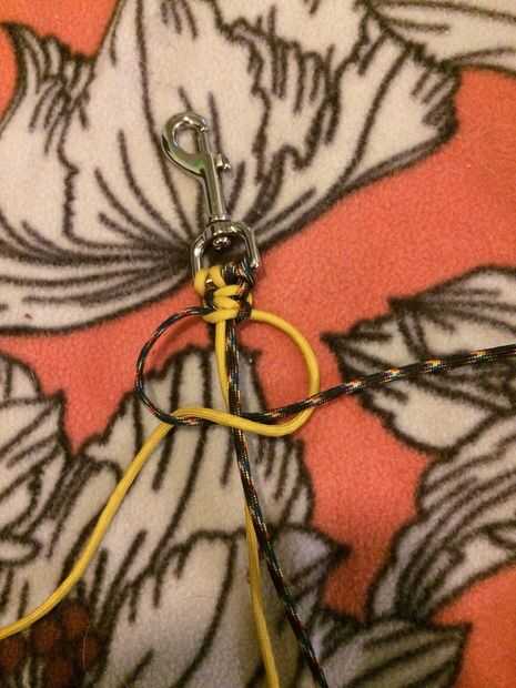 Comience el nudo de la cobra, si no sabes cómo seguir las imágenes. Los cuadros para formar el nudo tienen notas sobre ellos.