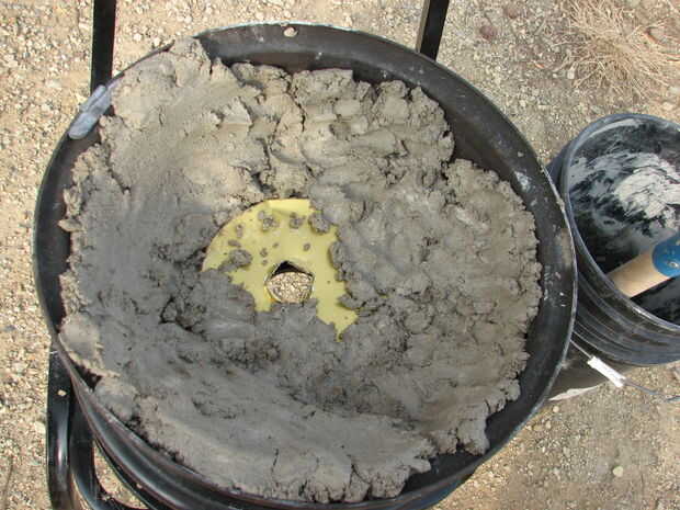 La Quickcrete debería estar listo. En globos, poner la arcilla de Quickcrete en el borde del neumático.