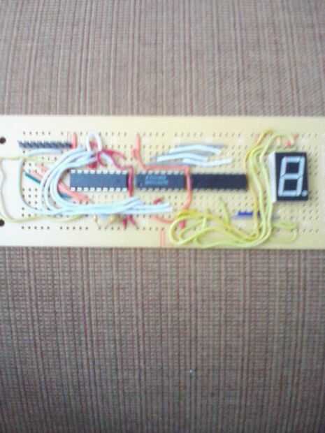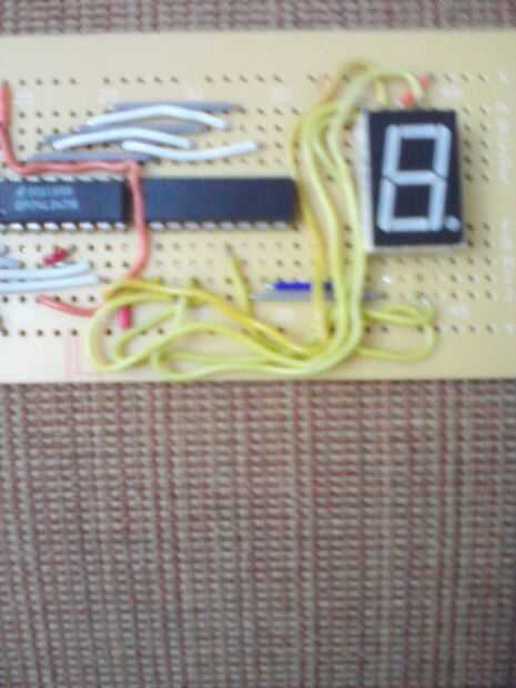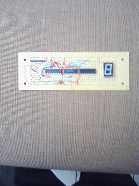 Instalación y soldadura el indicador LED en la placa para que pueda hacer las conexiones con el resto de componentes. Ahora, comenzando de izquierda a derecha, conectar la parte inferior de las IC resistencias de 220 ohmios a común ánodo LED display 7 segmentos en sus pins 7, 6, 4, 2, 1, 9, 10 respectivamente.