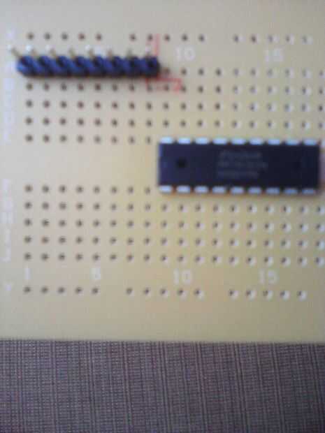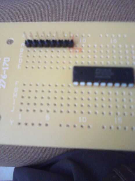 Inserte el 74C922 como se ve en la foto para que tengas suficiente espacio para cada componente que necesita para instalar más adelante. No se olvide, usted va a conectar los pines de izquierda a derecha de 1, 2, 3, 4, 11, 10, 8, 7 de la IC74C922.
