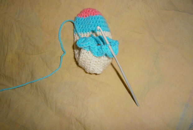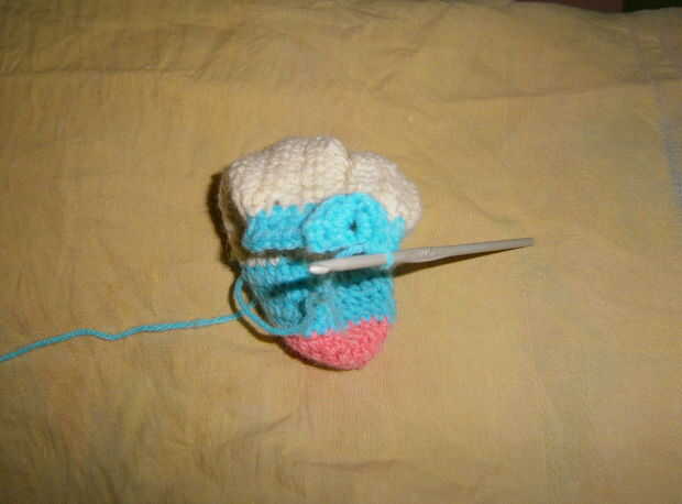 Esto es para la parte cableada de Big Daddy con fotos para mostrar cómo que creó la caja de la batería y su casco de luz con pegamento caliente. El patrón de ganchillo se puede encontrar en Ravelry. Sería aseado utilizar esta técnica en otras muñecas